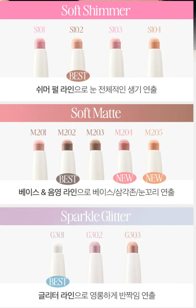 • This eyeshadow stick offers three styles—shimmer, matte, and glitter—for versatile eye makeup.