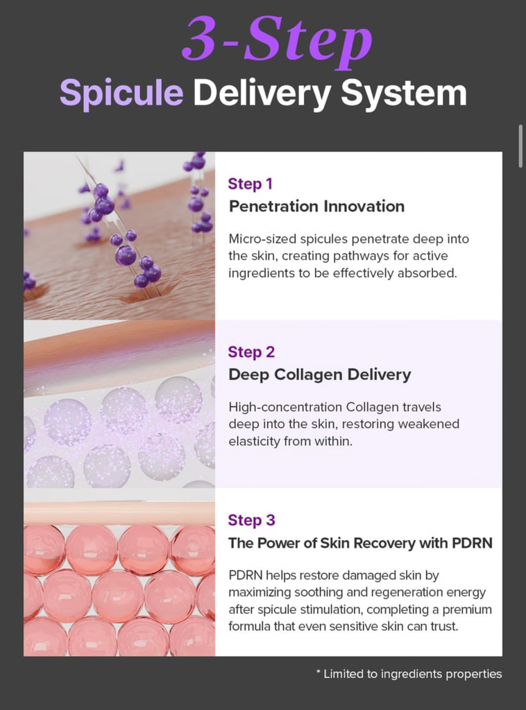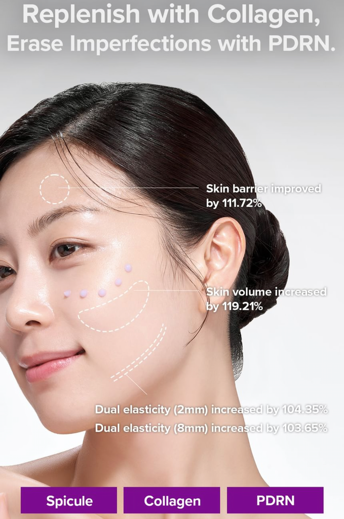 - Formulated with CICA PDRN to target damaged cells, promoting skin recovery and regeneration while fortifying the collagen barrier and soothing the skin.